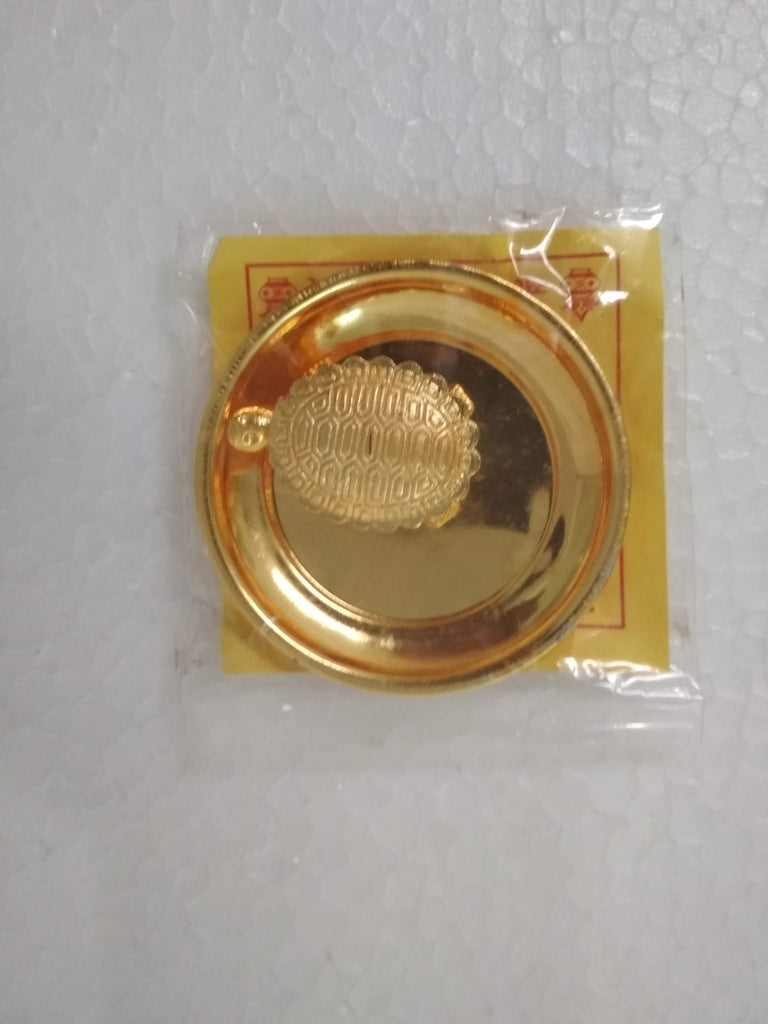 Vaastu/Fengshui Tortoise Turtle for Good Luck with Plate- Gold Coated.